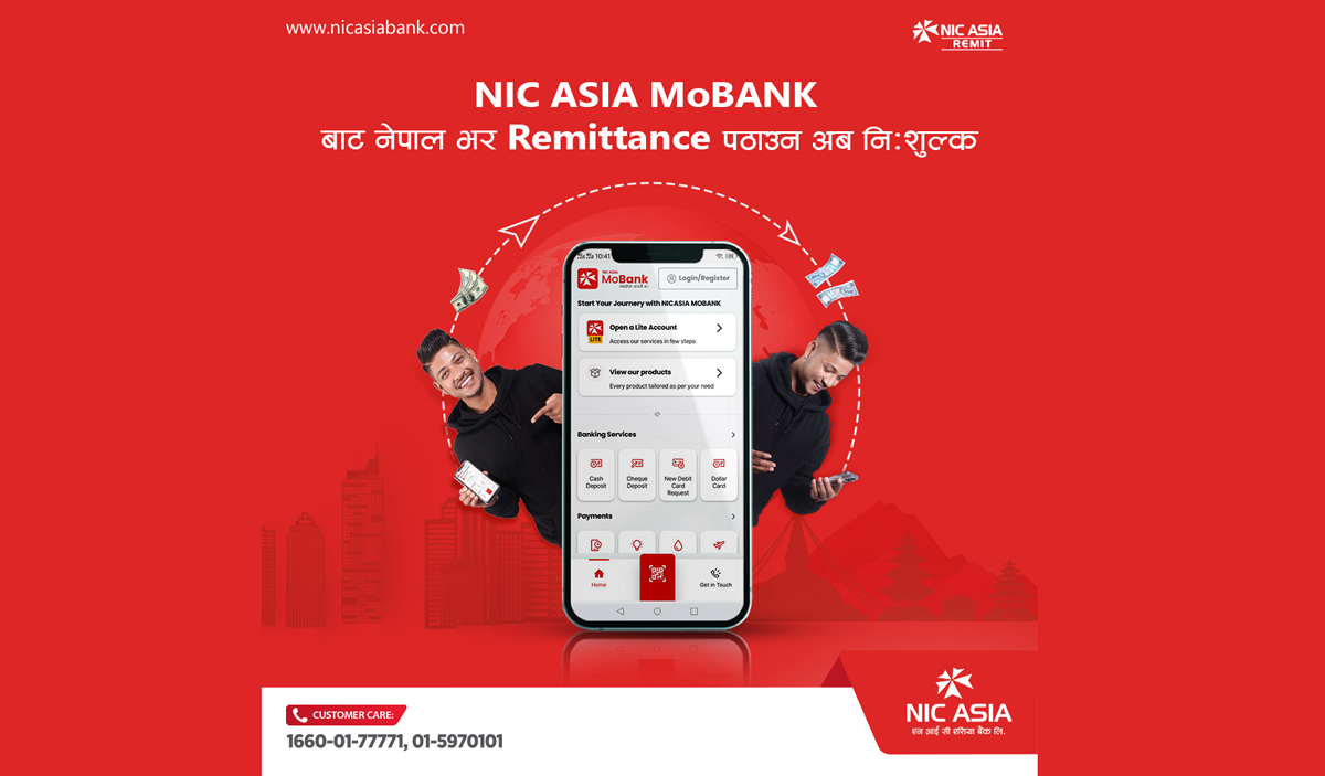 काठमाडौं । सहज एवं सबल बैंकिङ्गको मूल सिद्घान्त अनुरुप गतिशील बैंकिङ्गको अभ्यास गर्दै आएको एन आई सी एशिया बैंकले समयअनुरुप विभिन्न ग्राहकमैत्री आकर्षक योजनाहरू ल्याउने गरेको छ । यसै क्रममा बैंकले बडा दशैं, दीपावली, नेपाल सम्बत् तथा छठ पर्वको पावन अवसरमा मोबाइल बैंकिङ्ग एप (NIC ASIA MoBank) मार्फत दुई महिनासम्म निःशुल्क आन्तरिक रेमिटेन्स पठाउन सकिने आकर्षक योजना सार्वजनिक गरेको छ ।