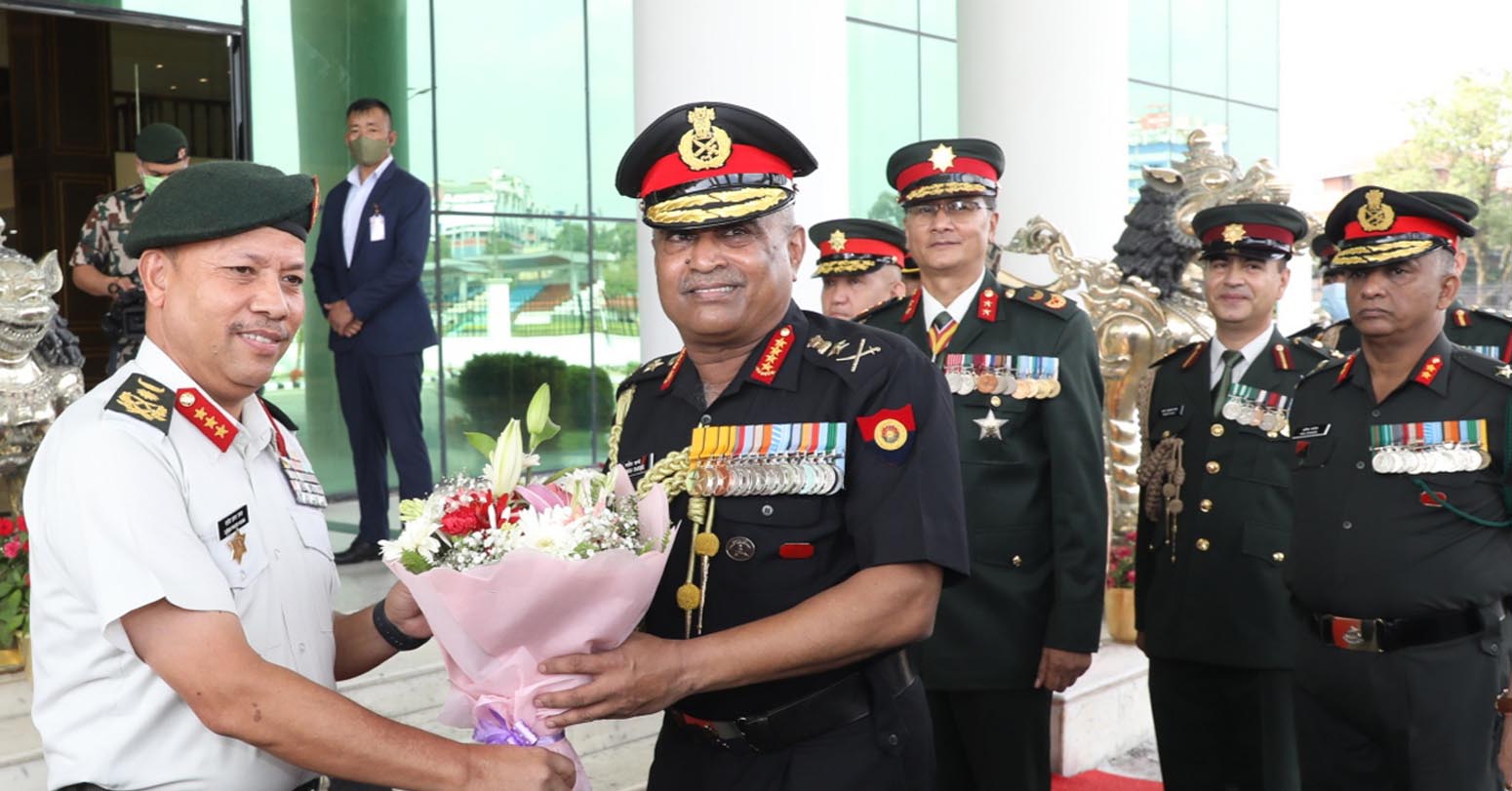 काठमाडौं । राष्ट्रपति विद्यादेवी भण्डारीले आज नेपाल भ्रमणमा रहेका भारतीय स्थल सेनाध्यक्ष मनोज पाण्डेलाई नेपाली सेनाको मानार्थ महारथीको दर्जा प्रदान गर्ने हुनुभएको छ ।