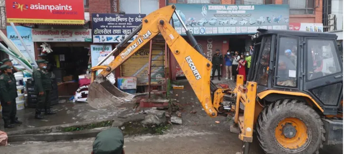 काठमाडौँ । महानगरले पटक पटक परेको आग्रहलाई बेवास्ता गर्दा तीनकुनले कोटेश्वर खण्डमा रहेका अनधिकृत संरचनामा काठमाडौँ महानगरपालिकाले डोजर चलाएको छ । डोजर चलाउनु अघि महानगरले सो क्षेत्रामा रहेका फुटपाथ हटाउन सडक व्यवसायीलाई अनुरोध गर्दै आईरहेको थियो ।