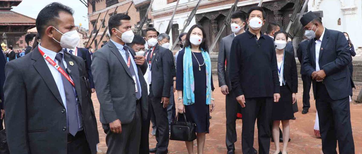 भक्तपुर । नेपालको चारदिने औपचारिक भ्रमणमा रहेका चिनियाँ जनकंग्रेस, स्थायी समितिका अध्यक्ष ली चान्शुले आज भक्तपुरको ऐतिहासिक सम्पदाहरुको अवलोकन गरेका छन् ।