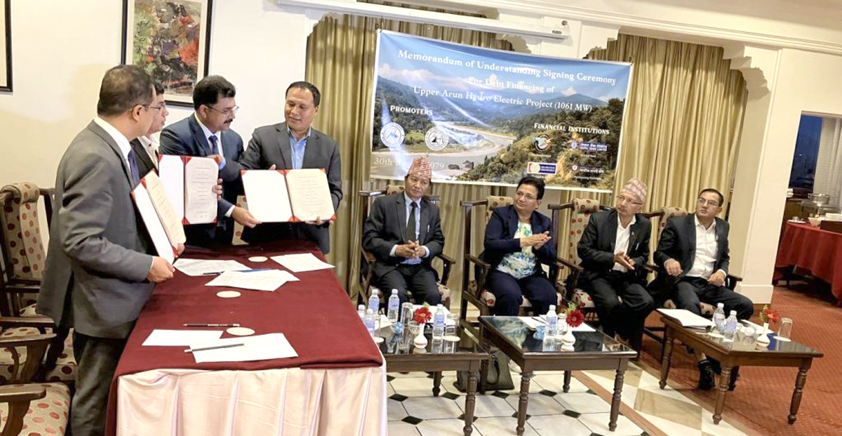 ऊर्जा जलस्रोत तथा सिँचाइमन्त्री पम्फा भुसालको उपस्थितिमा बिहीबार साँझ प्राधिकरण, आयोजनाको प्रवद्र्धक कम्पनी र स्वदेशी ऋण प्रवाह गर्ने बैङ्क तथा वित्तीय संस्थाको सहवित्तीयकरणको अगुवा गर्ने हाइड्रोइलेक्ट्रिसिटी इन्भेष्टमेन्ट एण्ड डेभलप्मेन्ट कम्पनी (एचआइडिसिएल)बीच ऋण लगानीसम्बन्धी समझदारी पत्रमामा हस्ताक्षर भएको छ ।