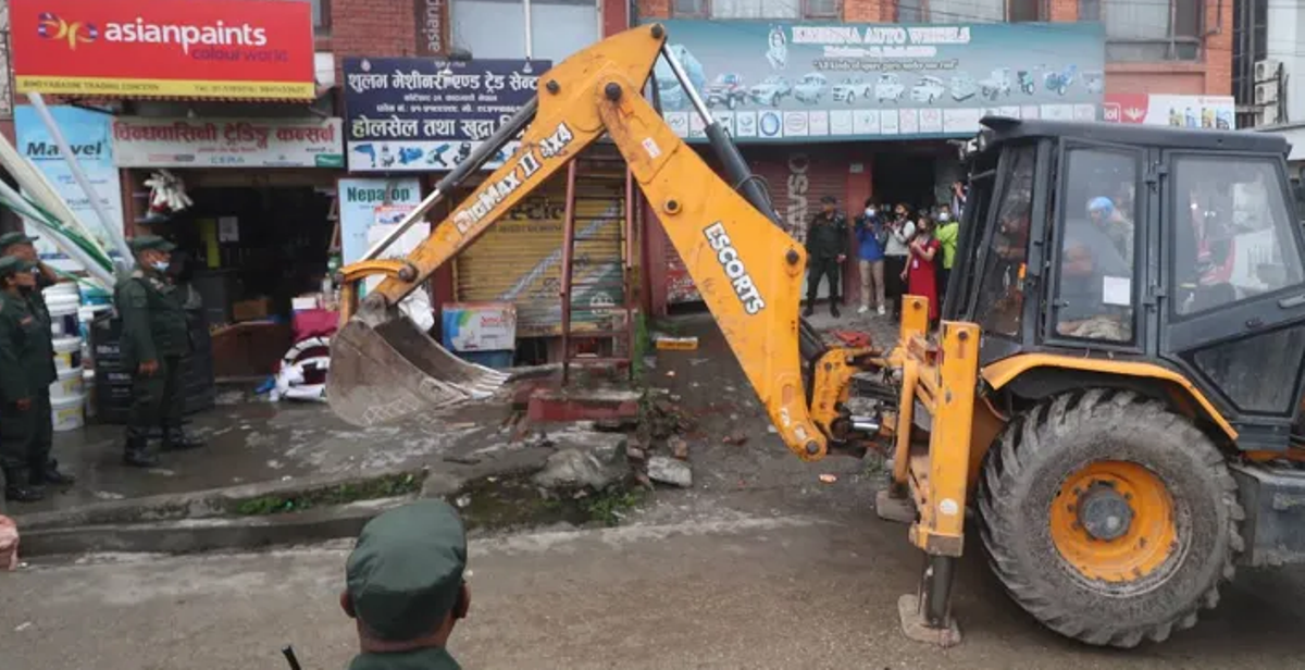 यस्तै दुई वटा टहरा पनि हटाउने काम भएको महानगरको भनाइ छ । आजै मात्रै महानगरपालिकाले नयाँबानेश्वर क्षेत्रका अनधिकृत संरचना हटाउन डोजर चलाएको छ । सडक सीमा मिचेर बनेका संरचना र पसल हटाउन महानगरपालिकाले डोजर चलाएको हो ।