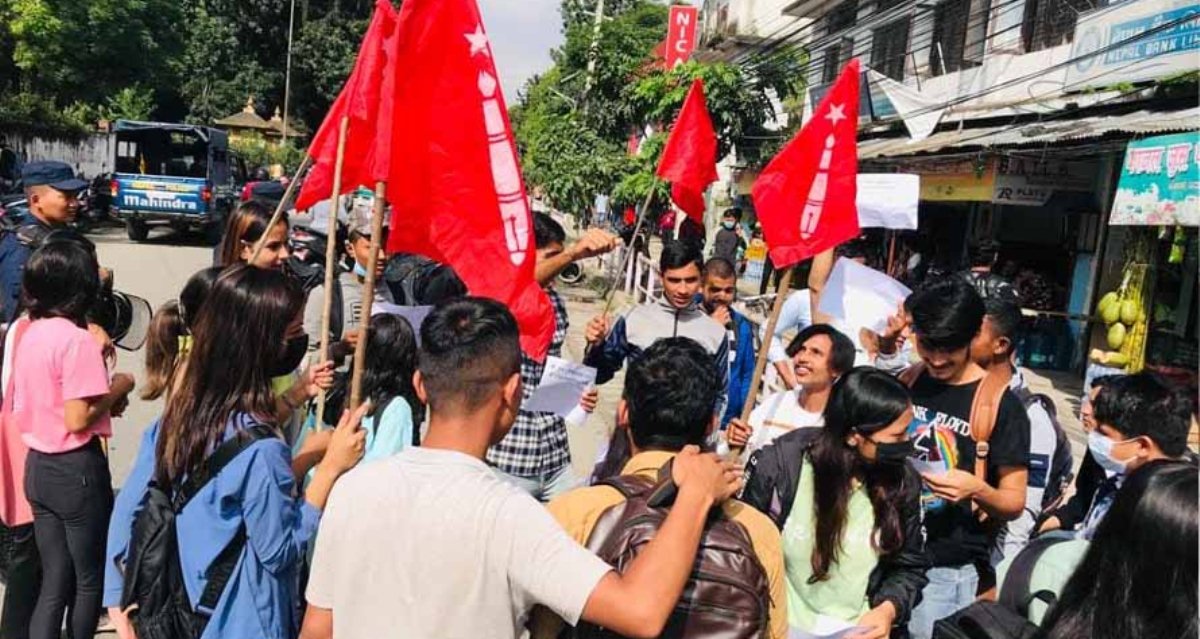 अनेरास्ववियुले त्रिचन्द्र क्याम्पस घन्टाघरमा प्रदर्शन गरेको हो ।