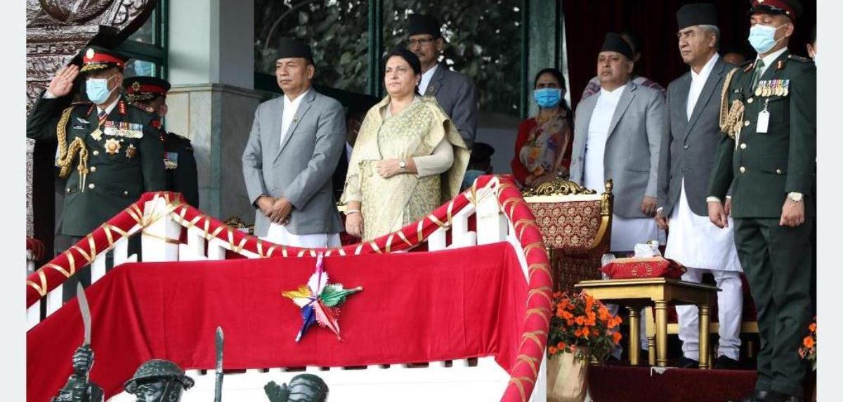 काठमाडौँ । राष्ट्रपति विद्यादेवी भण्डारीको समुपस्थितिमा नेपाली सेनाद्वारा आज सैनिक मञ्च टुँडिखेलमा विशेष ‘फूलपाती बढाइँ समारोह–२०७९’ सम्पन्न भएको छ ।