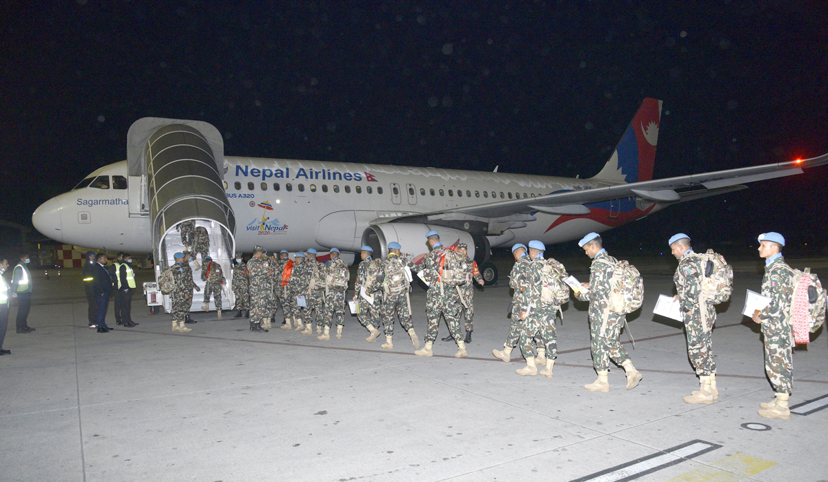काठमाडौँ । संयुक्त राष्ट्रसंघको आह्वानमा शान्ति स्थापनाका लागि ७५ जना नेपाली सेनाको टोली माली प्रस्थान गरेको छ ।नेपाली सेनाका सेनानी पवन थापाको कमान्डमा ७५ जनाको टोली नेपाल एयरलाइन्समार्फत बुधबार राति प्रस्थान गरेको सैनिक जनसम्पर्क तथा सूचना निर्देशनालयले जनाएको छ।