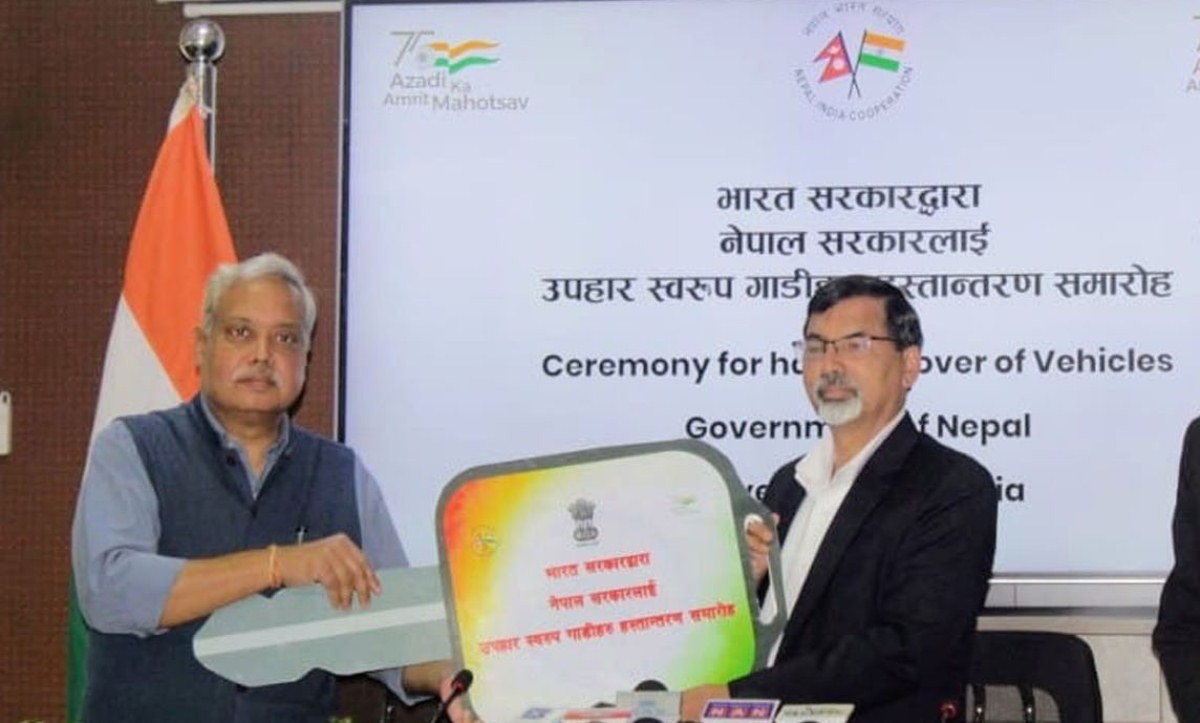 मंगलबार आयोजित एक कार्यक्रममा नेपालका लागि भारतीय राजदूत नवीन श्रीवास्तवले अर्थमन्त्री जनार्दन शर्मालाई २०० वटा सवारीसाधन हस्तान्तरण गरेका हुन् । भारतले प्रदान गरेको २०० गाडीमध्ये १२० वटा सुरक्षा निकायले र बाँकी ८० वटा निर्वाचन आयोगले प्रयोग गर्नेछन् ।