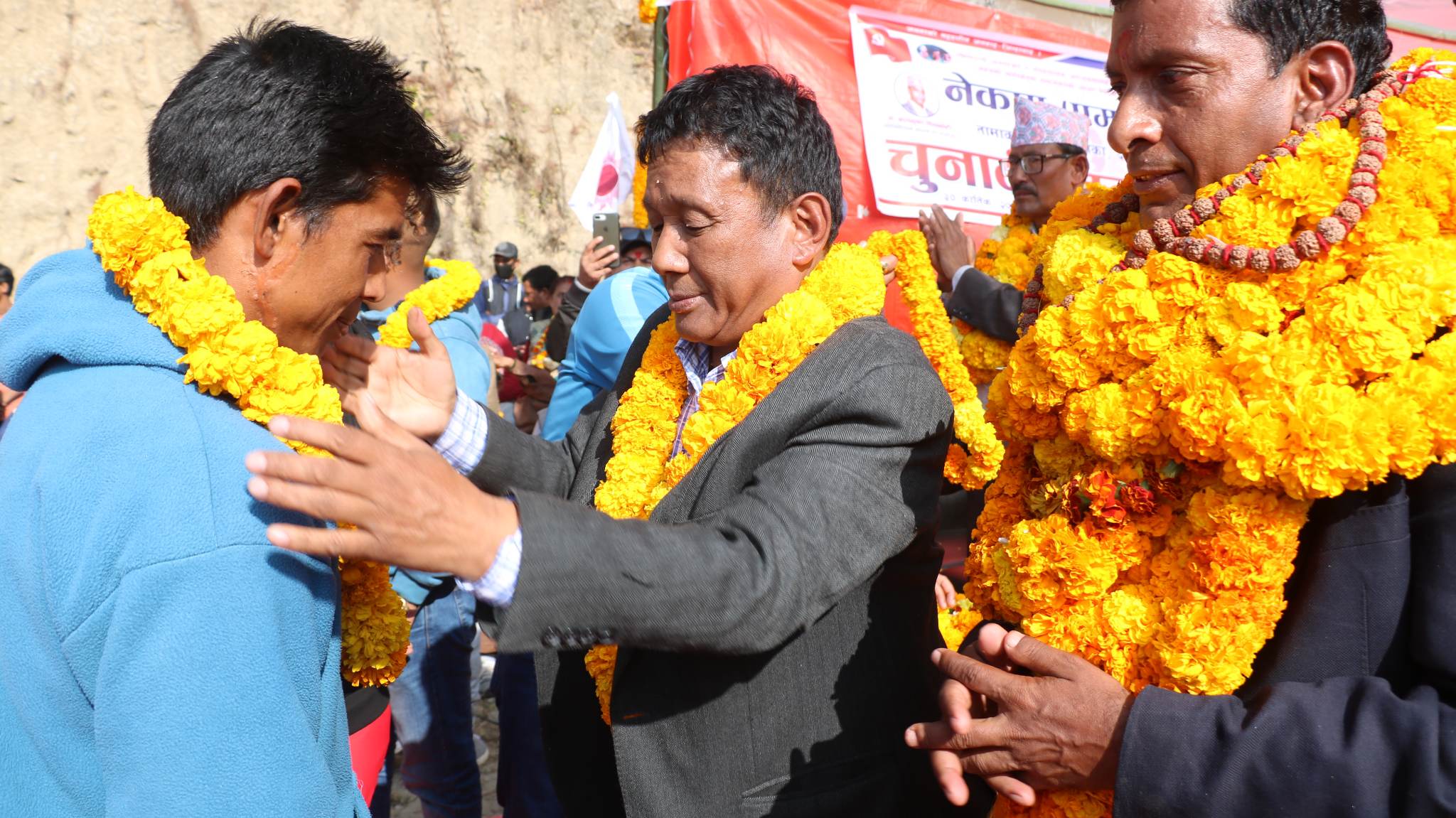 प्रवेशीहरुलाई प्रमुख अतिथि एमाले पोलिटब्यूरो सदस्य तथा पूर्व मन्त्री आनन्दप्रसाद पोखरेल, पोलिटब्यूरो सदस्य तथा पूर्व मन्त्री, पार्वत गुरुङ, केन्द्रीय सदस्यहरु सरस्वती बस्नेत, रचना खड्का, केन्द्रीय सम्पर्क समन्वय कमिटीका संयोजक श्याम बस्नेत, वागमती प्रदेशका दोलखाका ईन्चार्ज तथा पूर्व जिल्ला अध्यक्ष ईश्वरचन्द्र पोखरेल, नेकपा एमालेका प्रतिनिधिसभाका उम्मेदवार बालकृष्ण शिवाकोटी तथा प्रदेशसभा १ का उम्मेदवार नरबहादुर श्रेष्ठलगायतले स्वागत गरेका छन् ।