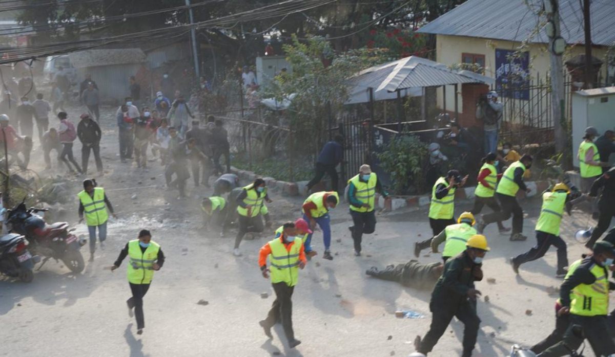 सुकुम्बासी र प्रहरीबीच झडप हुँदा काठमाडौं महानगर सुरक्षा बलका प्रमुख राजु पाण्डेको टाउकोमा चोट लागेको छ । उनीहरु हँसिया, लाठीलगायतका घरेलु हतियार बोकेर प्रदर्शनमा उत्रिएका छन्।