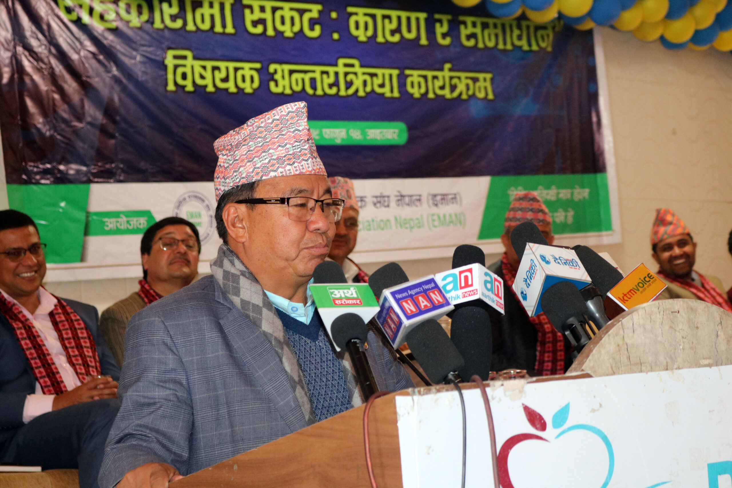 इमानका अध्यक्ष रोयल आचार्यले अर्थतन्त्र सङ्कटमा पर्दा सञ्चार क्षेत्रपनि प्रभावित हुने भएकाले अर्थतन्त्रको अवस्थामा सुधार ल्याउन हरेक क्षेत्रबाट सकारात्मक योगदान आवश्यक रहेको बताए ।
