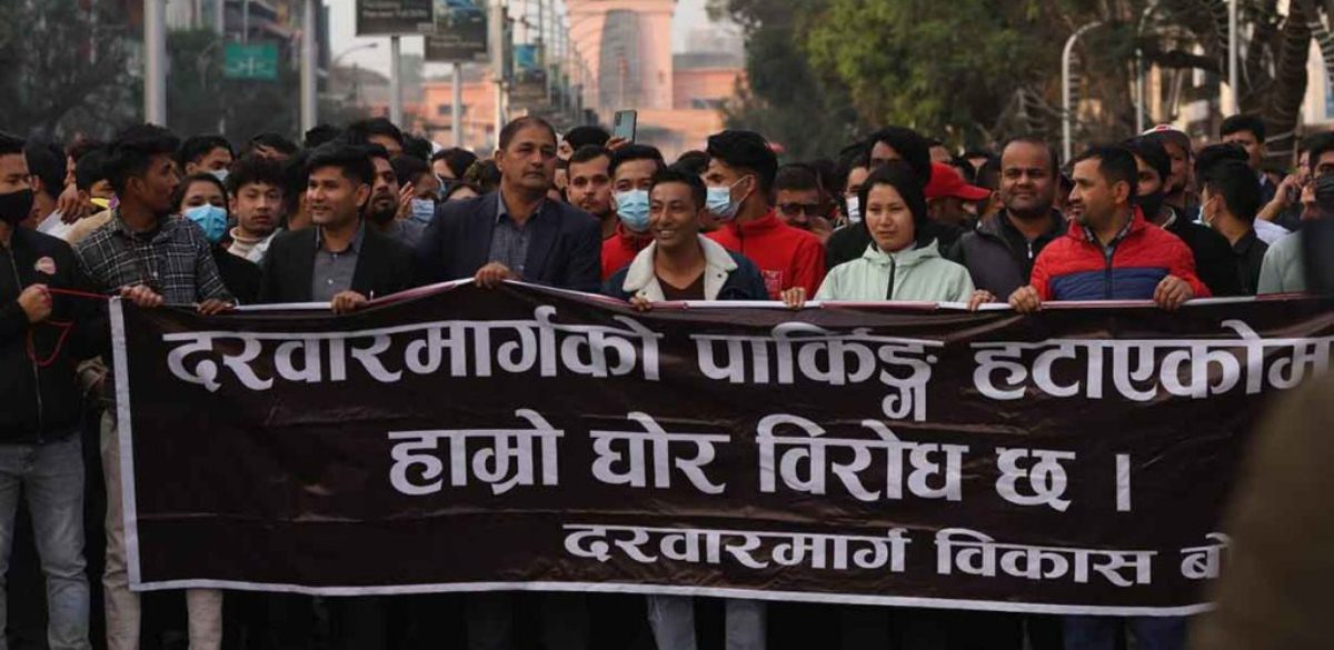काठमाडौं । काठमाडौं महानगरपालिकाले विकल्प नै नदिई पार्किङ हटाएर व्यवसाय ठप्प भएको भन्दै दरबारमार्गका व्यवसायीले सडकमा प्रदर्शन गरेका छन् ।