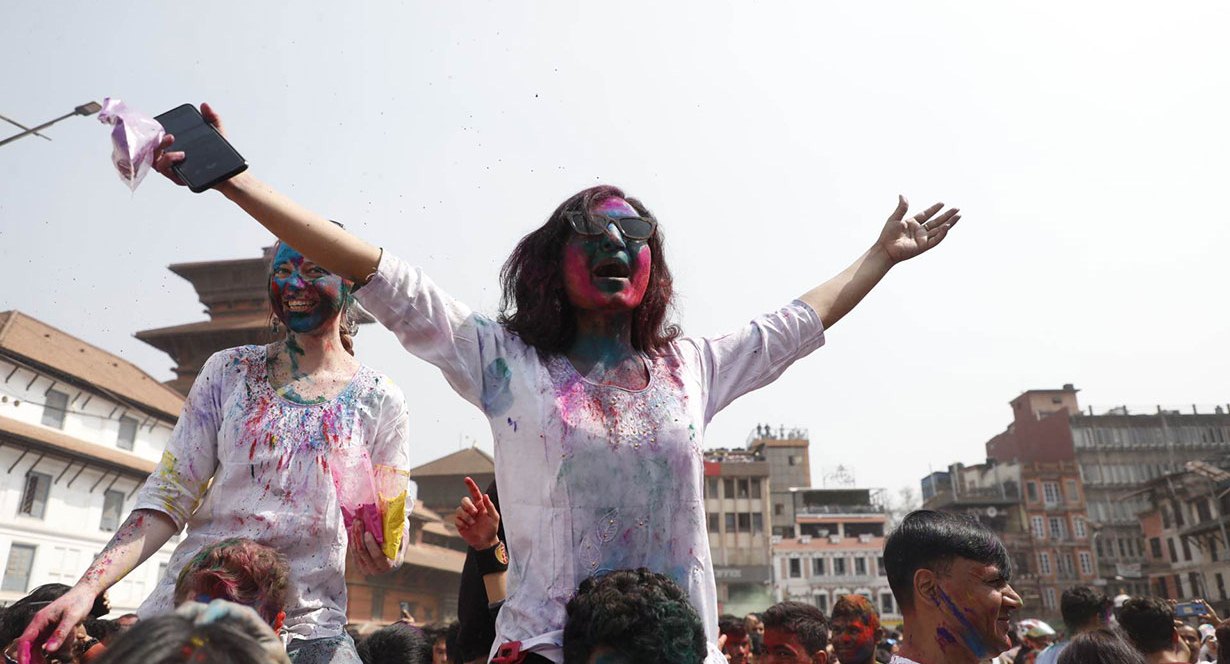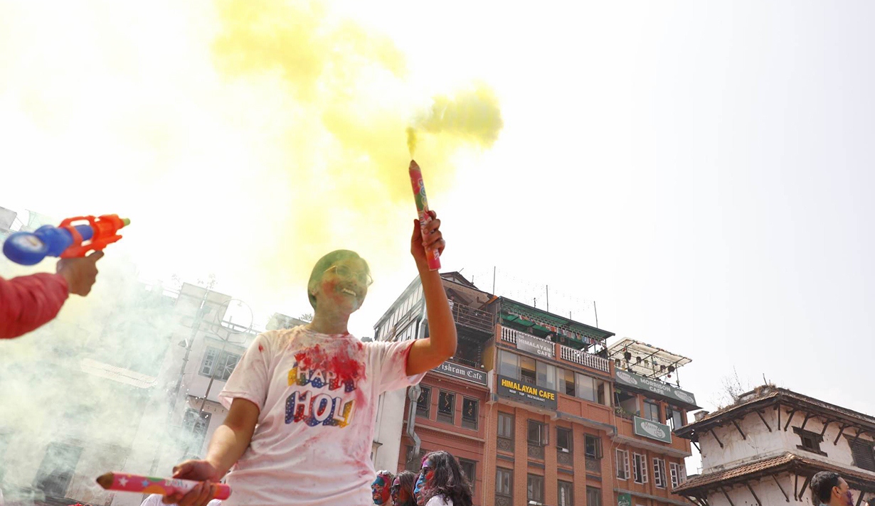 काठमाडौं । आज फागु पूर्णिमा अर्थात् होली पर्व । आज हिमाली तथा पहाडी जिल्लामा हर्षोल्लासका साथ मनाइँदैछ । काठमाडौंका विभिन्न स्थानमा युवायुवती,बालबालिका तथा विदेशी पर्यटकहरू भेला भएर होली मनाइरहेका छन् ।