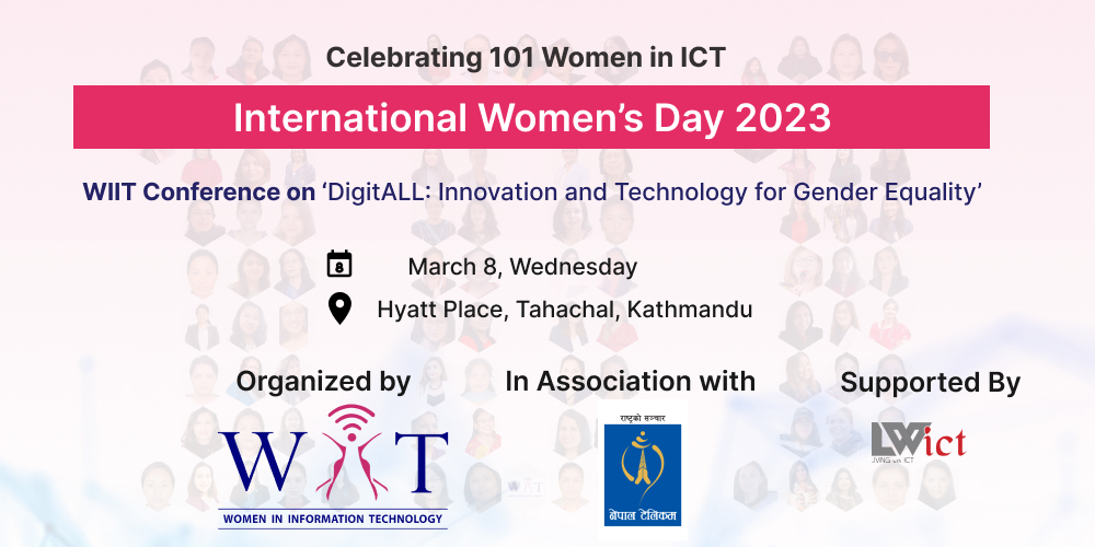 वुमन इन इन्फरमेसन टेक्नोलोजी अर्थात सूचना प्रविधिमा महिला (डब्लुआइआइटी)को आयोजनामा हुने उक्त कार्यक्रमलाई नेपाल टेलिकम इन एसोसिएसन विथ र लिभिङ विथ आइसिटी सहयोगी सस्थाको रुपमा सहकार्य रहेको छ ।