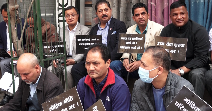 बैंक तथा वित्तीय संस्थामा चर्को ब्याजदरका कारण व्यवसाय गर्न कठिन भएको भन्दै नेपाल उद्योग वाणिज्य महासङ्घ, नेपाल उद्योग परिसङ्घ, नेपाल चेम्बर अफ कमर्स, नेपाल व्यापार सङ्घ, नाडा अटोमोबाइल्स एसोसिएसनलगायत निजी क्षेत्रका छाता सङ्गठनमा आबद्ध व्यवसायी आन्दोलित थिए । उनीहरु सोमबारदेखि नेपाल राष्ट्र बैंकमा धर्ना बसेका थिए ।