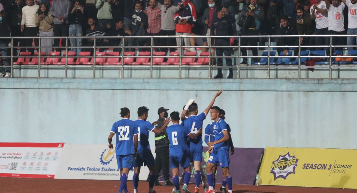 पहिलो हाफमा १–० ले पछि परेको नेपालका लागि इन्जुरी समयमा दीपकराज सिंह ठकुरीले बराबरी गोल फर्काए । निशान खड्काले प्रहार गरेको कर्नरमा अनन्त तामालले दिएको पासमा पेनाल्टी एरिया भित्र अन्मार्क्ड रहेका दीपकले हेडरमार्फत उत्कृष्ट फिनिसिङ गरे ।