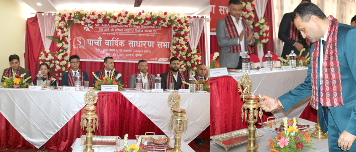 काठमाडौं । एन आई सी एशिया लघुवित्त वित्तीय संस्था लिमिटेडको पाँचौँ वार्षिक साधारण सभा सम्पन्न भएको छ । आज होटल गजुर, गंगालाल मार्ग, भोटेपुल, धरान उप–महानगरपालिका वडा नं. ८, सुनसरीमा आयोजित सभाले विभिन्न एजेन्डा सहित संस्थाको आ.व. २०७८/७९ को सञ्चालक समितिको प्रतिवेदन, वार्षिक आर्थिक विवरण (आषाढ मसान्त २०७९ को वासलात, आ.व. २०७८/७९ नाफानोक्सान हिसाब र सोही अवधीको नगदप्रवाह विवरण लगायत वार्षिक आर्थिक विवरणसँग सम्बन्धित अनुसूचीहरु समेत) पारित गरी सभाले संस्थाको शेयरधनीहरुलाई चुक्ता पूँजीको १४.७५ प्रतिशतका दरले रु. २५,६५,६७,४००/– (अक्षरेपी पच्चीस करोड पैँसठ्ठी लाख सतसठ्ठी हजार चार सय मात्र) नगद लाभांश (कर प्रयोजन समेत) वितरण गर्ने प्रस्ताव पारित गरेको छ ।