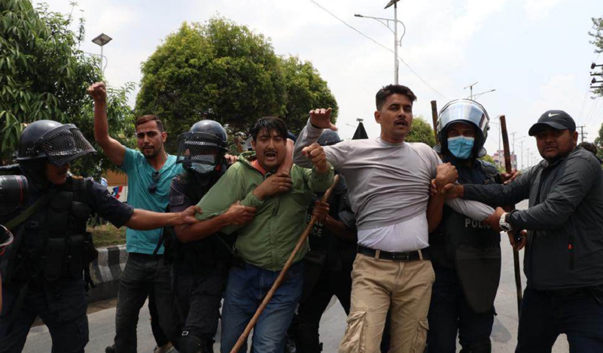 काठमाडौं । नक्कली भुटानी शरणार्थी प्रकरणमा दोषीलाई कडा कारबाहीको माग गर्दै आन्दोलनमा उत्रिएका नेत्रविक्रम चन्द ‘विप्लव’का कार्यकर्तालाई प्रहरीले पक्राउ गरेको छ ।