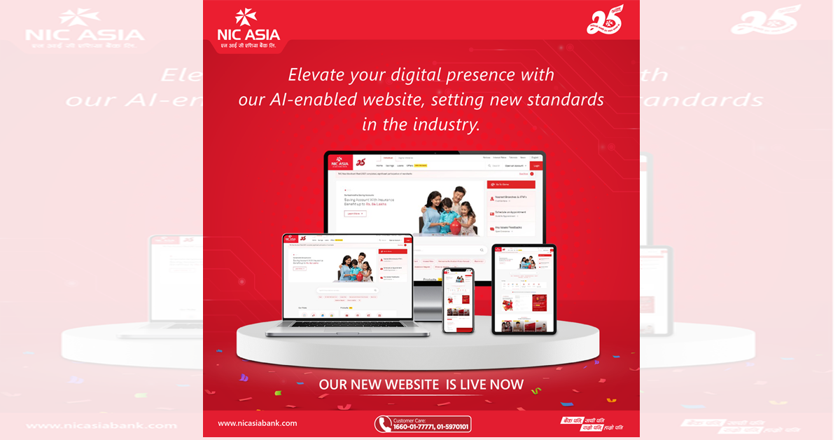 काठमाडौं । समयअनुरुप परिष्कृत सेवा तथा सुविधाहरुका साथ लाखौं ग्राहकहरुलाई आधुनिक बैंकिङ्गको अभ्यास गरिरहेको एन आई सी एशिया बैंकले डिजिटल बैंकिङ्गलाई थप सहज, सरल र सुरक्षित बनाउने अठोटका साथ आफ्नो वेबसाइट nicasiabank.com लाई आकर्षक फिचरहरुसहित नयाँ डिजाइनमा स्तरोन्नति गरेको छ ।