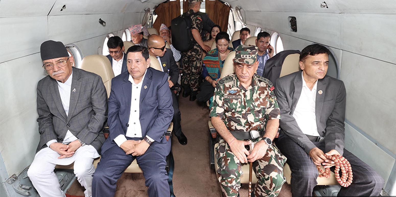 नेपाली सेनाको हेलिकप्टरमार्फत उहाँहरुले प्रभावित क्षेत्रको अवलोकन गरेका छन् । साथै सो टोलीमा नेपाली सेनाका प्रधानसेनापति, गृह मन्त्रालयका बिपत हेर्ने प्राविधिक इन्जिनियर र प्रधानमन्त्री कार्यालयका विपत हेर्ने अधिकृत पनि सहभागी रहेका प्रधानमन्त्रीको सचिवालयले जनाएको छ ।