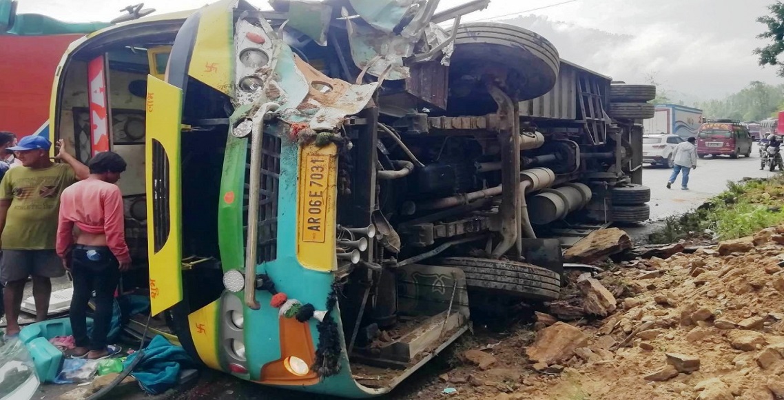 काठमाडौं । काठमाडौंबाट भारतको राजस्थान जाँदै गरेको यात्रु बस धादिङको गल्छीमा दुर्घटना भएको छ । एआर ०६ ई ७०३१ नम्बरको बस विहान नौ बजे सडकमै पल्टिएको हो । दुर्घटनामा घाइते भएकाको उद्धार सुरु गरिएको छ भने राजमार्ग अवरुद्ध भएको थियो । क्रेनको सहायताले वस उठाएपछि अवरुद्ध बाटो खुलेको बताइएको छ ।