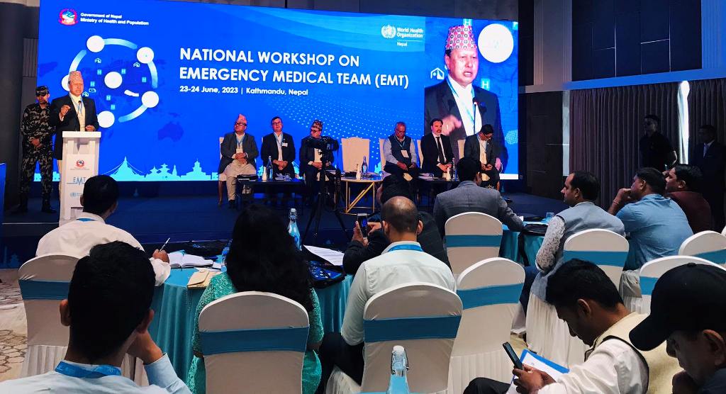 स्वास्थ्य सेवा विभागका महानिर्देशक डा दीपेन्द्ररमण सिंहले देशभर २५ अस्पताल ‘हब स्याटेलाइट’ आकस्मिक सेवा प्रदान गर्नसक्ने अवस्थामा रहेको बताए। उनले अस्पतालको मापदण्डअनुसार आकस्मिक योजना हुनुपर्ने बताए । गुणस्तर मापन तथा अनुगमन महाशाखा प्रमुख डा मदन उपाध्यायले आकस्मिक चिकित्सकीय समूह ‘इएमटी’ लाई कार्यान्वयनको चरणमा लैजान कार्यशालाको आयोजना गरिएको जनाउँदै पूर्वतयारीका कार्यलाई समेत लिएर दुई दिने छलफल गरिने बताए । रासस