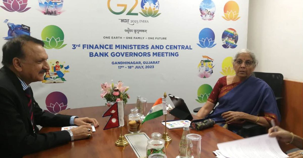 काठमाडौं । भारतको गुजरातमा भइरहेको जी–२० मुलुकका अर्थमन्त्रीहरूको बैठकका अवसरमा अर्थमन्त्री डा प्रकाशशरण महत र भारतीय अर्थमन्त्री निर्मला सीतारमणबीच आपसी सहयोग र द्विपक्षीय सम्बन्धका बारेमा छलफल भएको छ ।