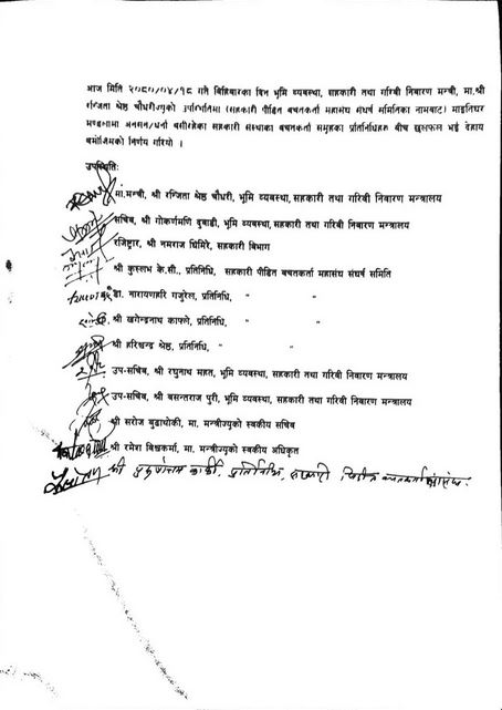 बिहीबार सिंहदरवारस्थित भूमि व्यवस्था, सहकारी तथा गरिवी निवारण मन्त्रालयमा भएको सहमतिसँगै आन्दोलनका कार्यक्रमहरू स्थगित गरिएको छ ।
