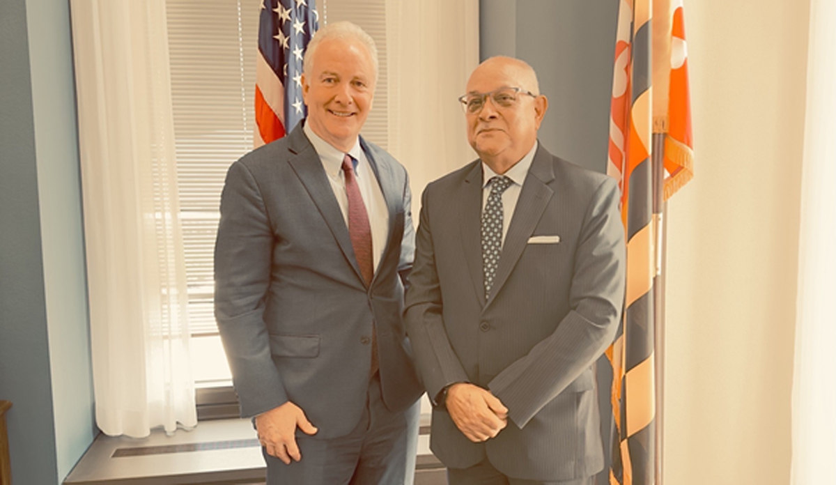 वासिङ्गटन डिसी । अमेरिकी उपल्लो सदनका सिनेटर क्रिसभ्यान होलानसँग अमेरिकाका लागि नेपालका राजदूत श्रीधर खत्रीले क्यापिटल हिलमा भेटघाट गरेका छन् ।