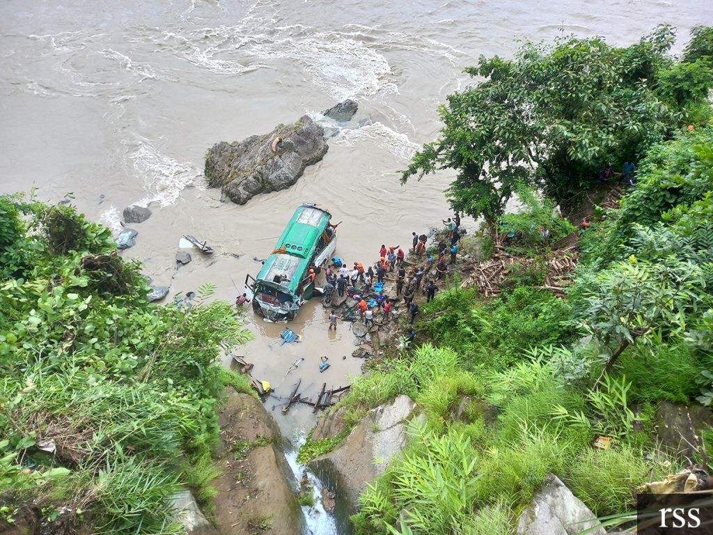 काठमाडौंबाट पोखरा जाँदै गरेको प्रदेश ३–०१–००५ ख ९९५२ नम्बरको बस बुधबार बिहान करिब ११ बजे त्रिशूली नदीमा खसेको हो।