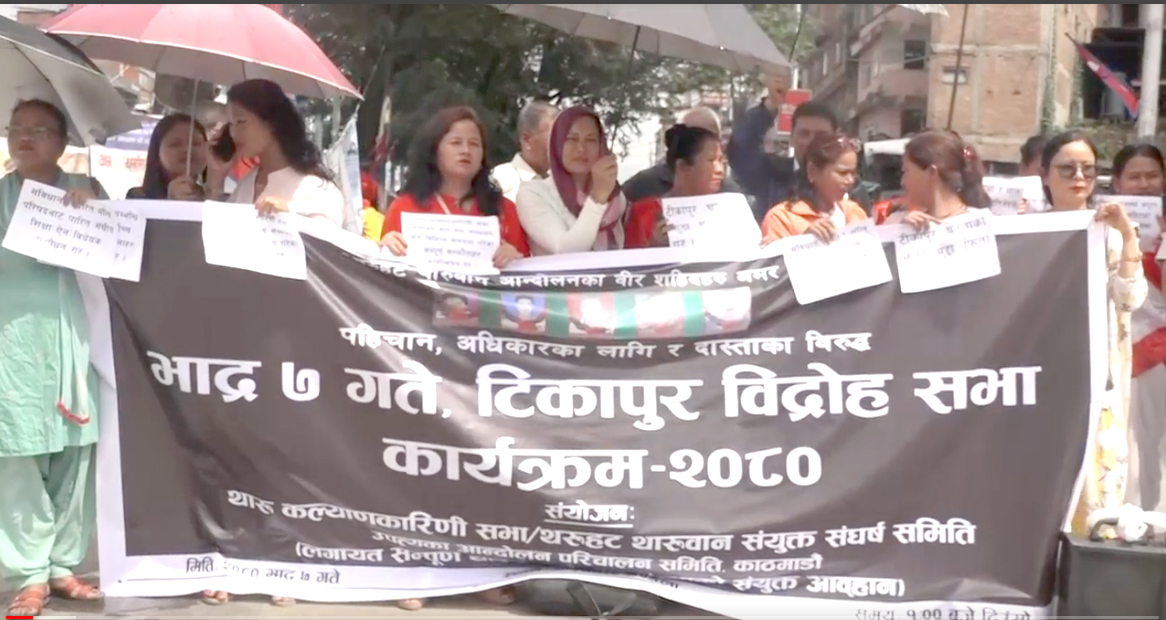 काठमाडौंं । कैलालीको टीकापुर घटनाको सम्झनामा थारु कल्याणकारीणी सभा, थरुहट थारुवान संयुक्त संघर्ष समिति लगाएतका संघसंस्थाहरुले काठमाडौंमा विद्रोह सभा गरेका छन् ।