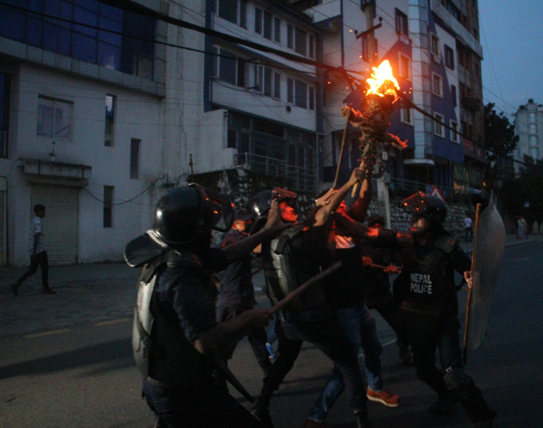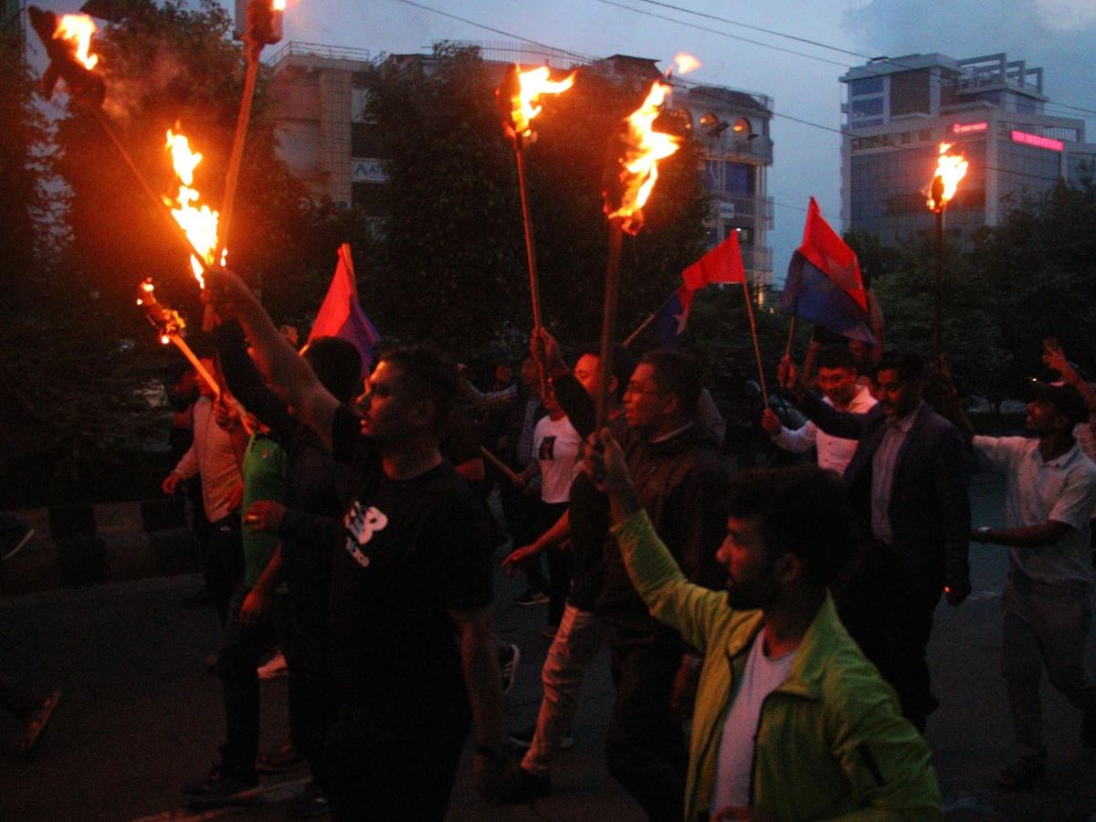 एलपी ग्यास, पेट्रोलियम पदार्थ, खाद्यान्न लगायत अन्य उपभोग्य वस्तुहरूमा भइरहेको अश्वभाविक मूल्यवृद्धि विरूद्ध राष्ट्रिय युवा संघ नेपालले आज बानेस्वरमा मसाल जुलुस सहितविरोध प्रदर्शन गरेको हो । उनीहरुले राष्ट्रिय युवा संघ नेपालको कार्यलयदेखि मसाल बाल्दै मुख्य सडकमा प्रवेश गरेर सडक एकछिन अवरोध समेत गरेका थिए ।