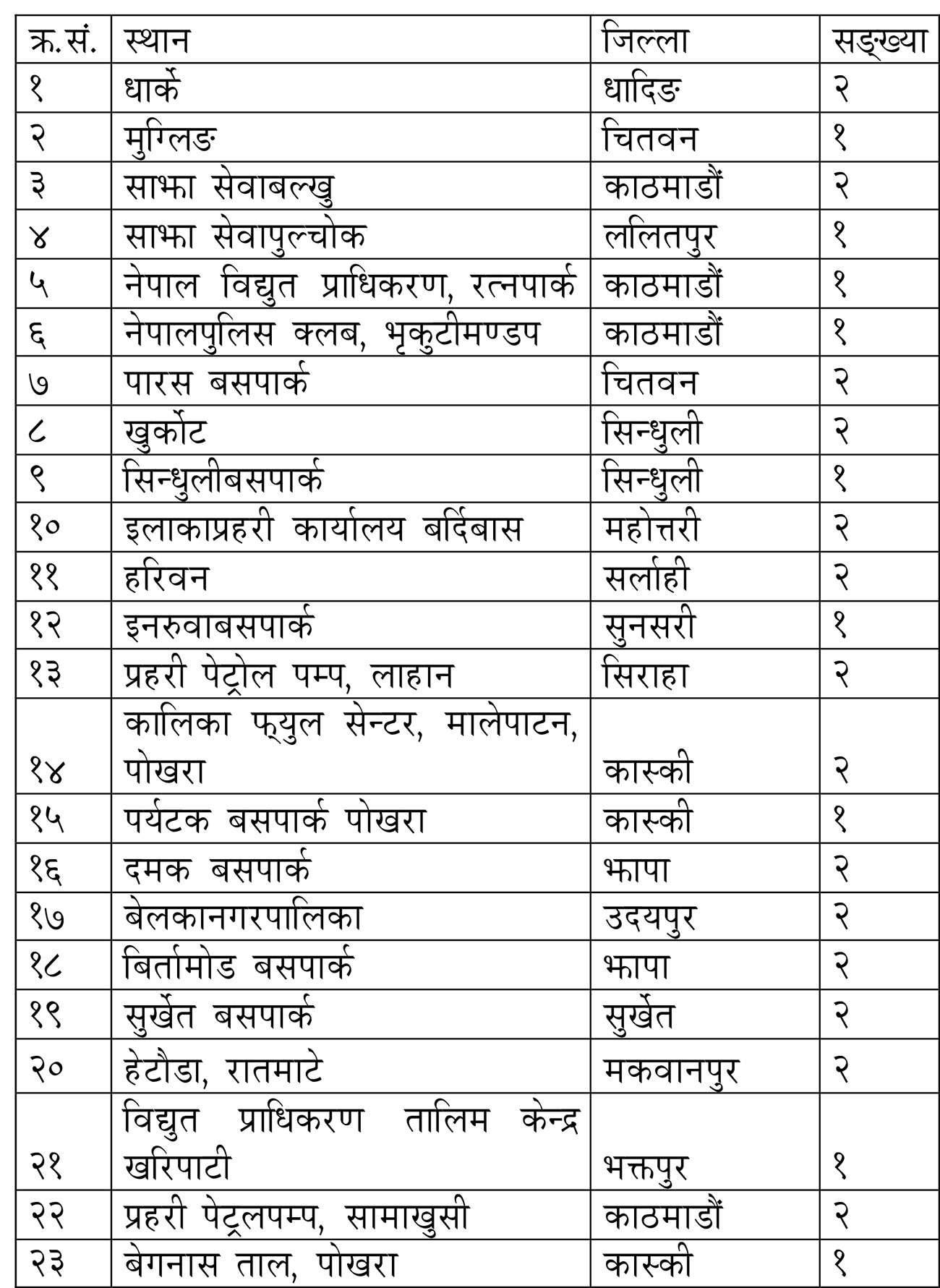 करिब ४० करोड रुपैयाँ लागतमा निर्माण गरिएका चार्जिङ स्टेसनमध्ये २६ वटामा ठूला बस, माइक्रो, ट्रक, पिकअपतथा कार र २५ वटामा साना-ठूला कारहरू चार्ज गर्न मिल्ने छन् । उद्घाटन कार्यक्रममा मन्त्री बस्नेतले ५१ वटा चार्जिङ स्टेसन सञ्चालनमा आउनु विद्युतीय सवारी साधनको यात्रा हरित,स्वच्छ ऊर्जा खपत मार्फत कार्वन उत्सर्जन तथा जलवायु परिवर्तनका प्रभावहरु न्यूनिकरणमार्फत देशको दीगो विकासमा महत्वपूर्ण पाइला भएको बताए ।