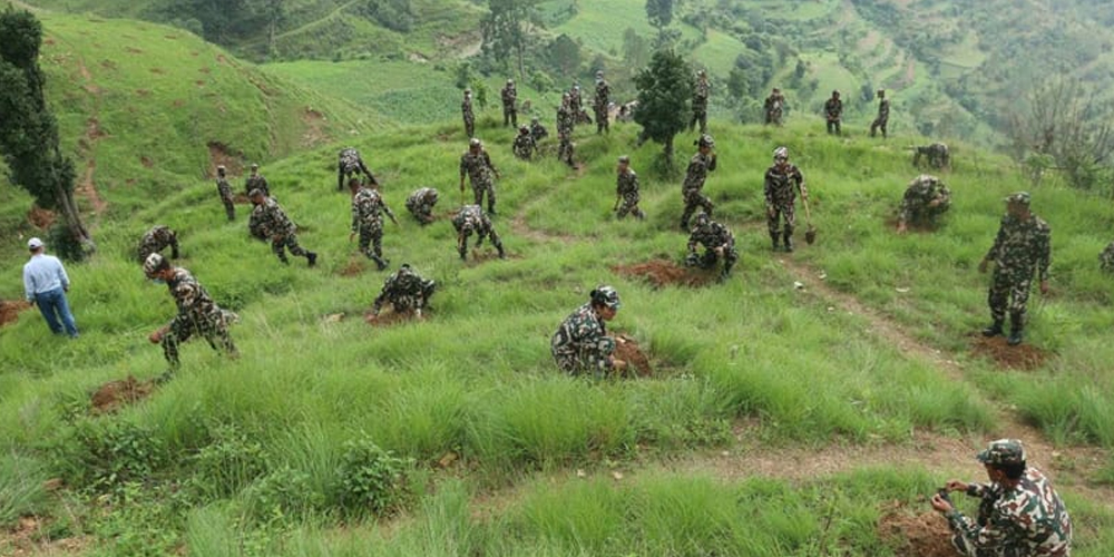 भोजपुर । वातावरणको संरक्षणका लागि नेपाली सेनाले दुई हजार छ सय बिरुवा रोपेको छ । नेपाली सेनाको नयाँ श्रीनाथ गणले भोजपुर नगरपालिका–१२ टक्सारस्थित इनामे सामुदायिक वनमा वृक्षरोपण गरेको हो ।