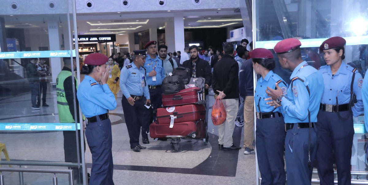 आजै उद्धार गरी नेपाल ल्याइएका नागरिकहरुलाई विभिन्न गन्तव्यमा पुर्याउनका लागि विमानस्थलमा नेपाल प्रहरी तीन वटा बसहरु तयारी अवस्थामा राखिएको थियो ।