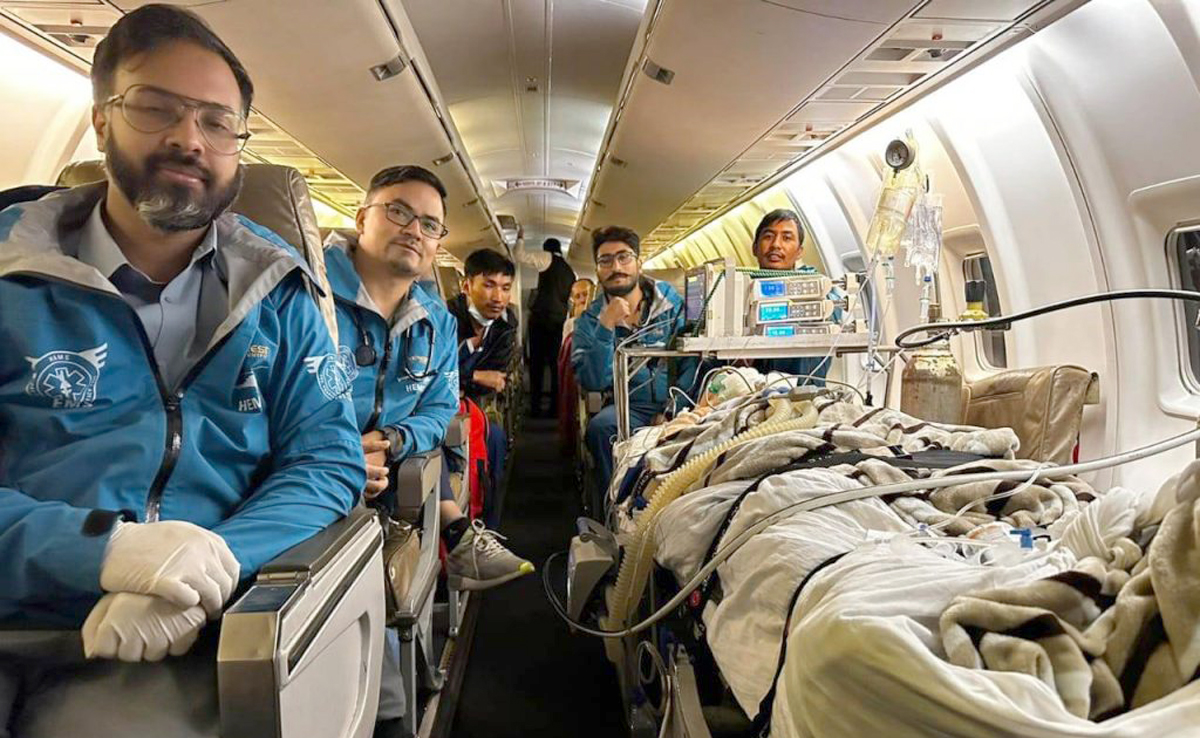 ह्याम्स अस्पतालको प्रि हस्पिटल विशेषज्ञ टोलीका डा. निशान्त ढकाल, डा. रामकृष्ण बुढाथोकी, डा. आरोग्य तथा पारामेडिक्स सरोज चौधरी, सुनिल केएम र बलि जंग शाहीले ‘मेडिकल स्कर्टिङ’ गरी पाइलट सेढाईलाई नेशनल बर्न सेन्टर पुर्याएको अस्पतालले जनाएको छ ।