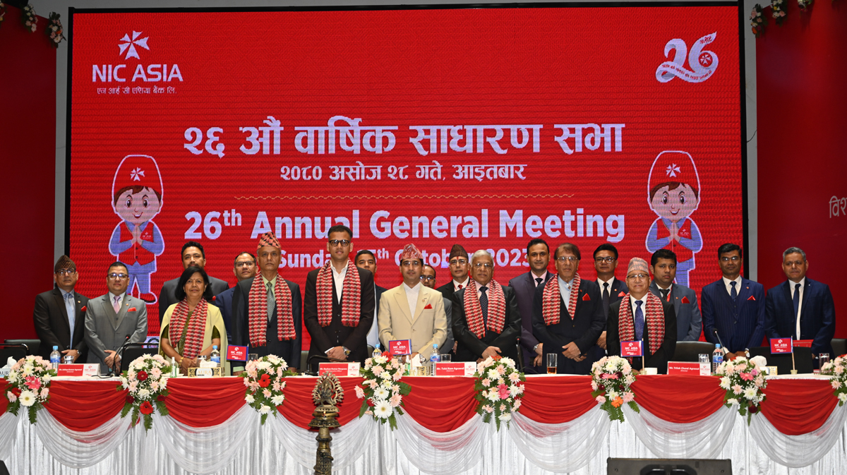 काठमाडौं । लाखौं ग्राहकहरूमाझ सहज, सबल, गतिशील, विश्वसनीय र उत्तरदायी बैंकिङ्गको अभ्यास गर्दै आइरहेको एन आई सी एशिया बैंक लिमिटेडको २६ औं वार्षिक साधारण सभा आज सम्पन्न भएको छ ।