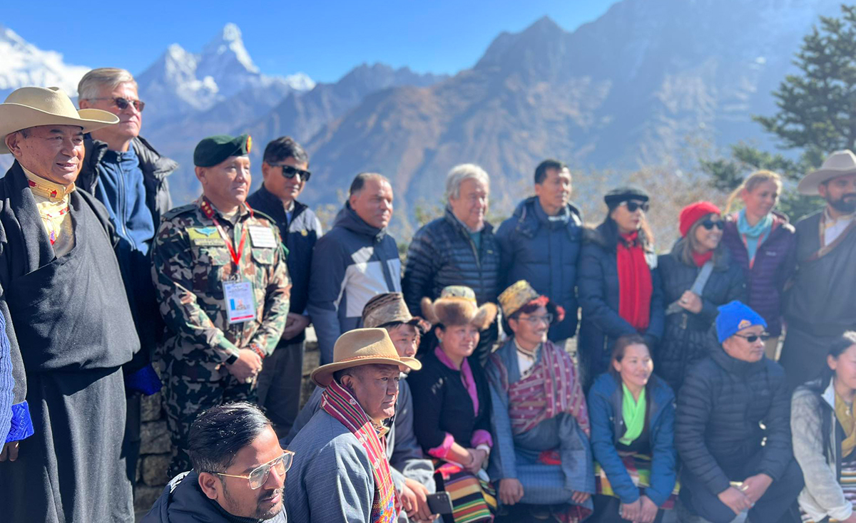 नेपाली सेनाको हेलिकोप्टरमार्फत खुम्बु पासाङ ल्हामु गाउँपालिका- ४ खुम्जुङ आएका गुटेरेसले स्थानीयसँगको अन्तरक्रियामा विकसित राष्ट्रहरुको नियति विकशिल राष्ट्रहरुले भोग्नु परेको भन्दै दुःख व्यक्त गरे ।