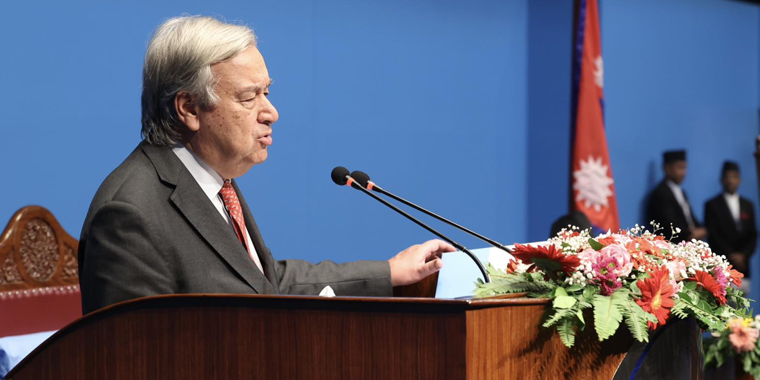 मंगलबार संघीय संसदको संयुक्त दुवै सदनको बैठकलाई सम्बोधन गर्दै महासचिव गुटेरेसले पीडित पक्षको अधिकार रक्षा गर्दै शान्ति प्रक्रिया टुंग्याउन आग्रह गरेका हुन् ।
