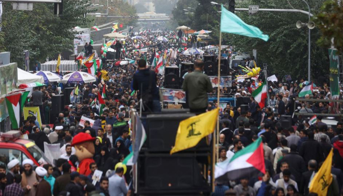 तेहरान । सन् १९७९ मा तेहरानस्थित अमेरिकी दूतावास कब्जा गरेको वार्षिकोत्सव मनाउँदै हजारौं इरानीहरूले गाजामा प्यालेस्टिनीहरूको समर्थनमा देशभर जुलुस निकालेका छन् ।