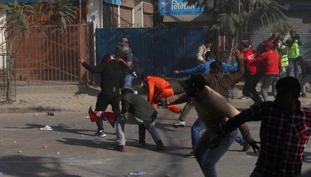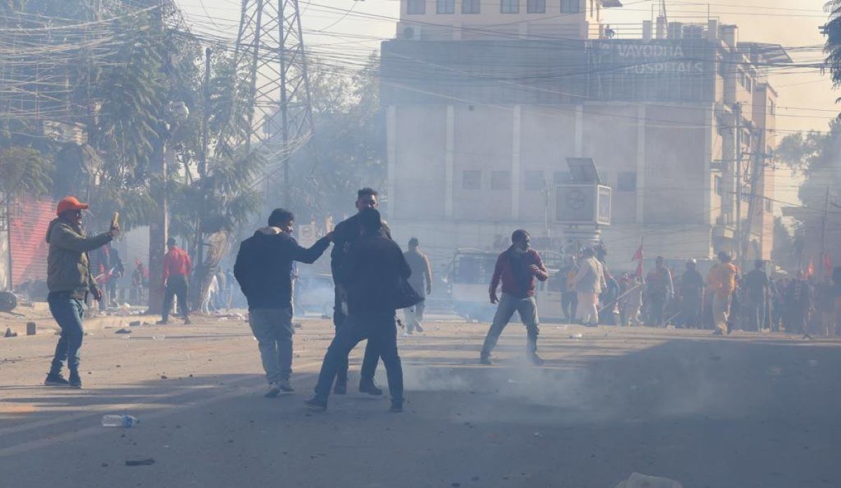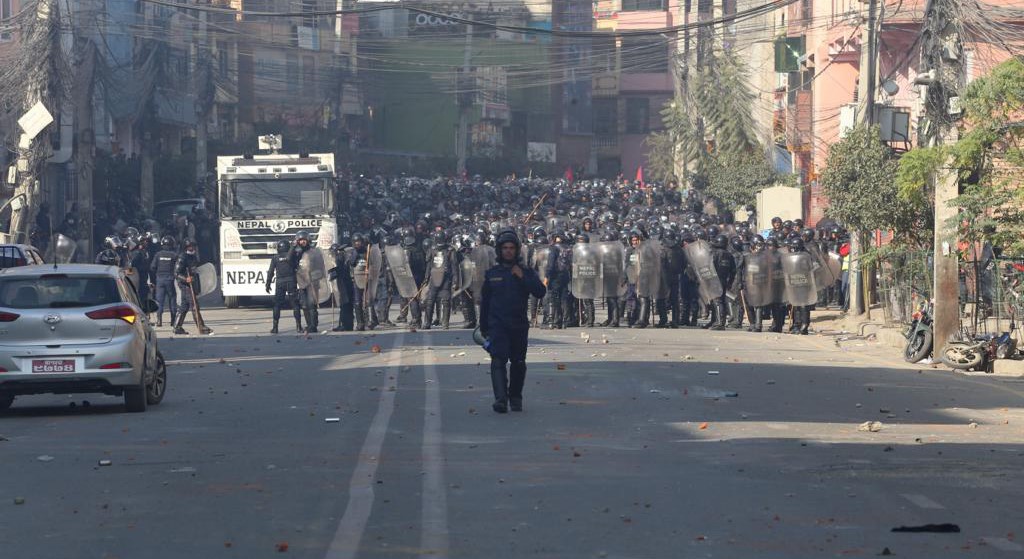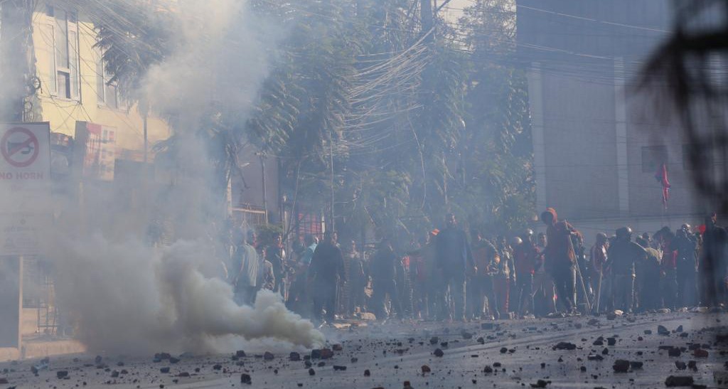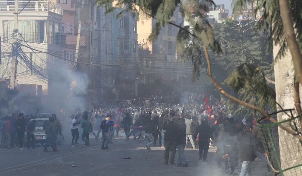 सो क्रममा प्रहरीले पानीको फोहरा, आधा दर्जन बढी अश्रुग्यास प्रहार गरेको थियो भने प्रदर्शनकारीले ढुंगा प्रहार गरेका थिए ।