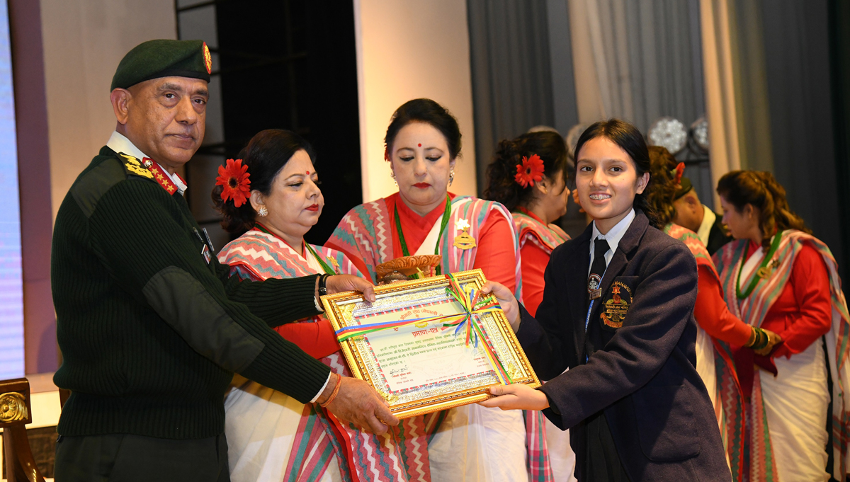 संघले यस वर्ष बाल दिवसको उपलक्ष्यमा आयोजना गरेको अन्तर सैनिक महाविद्यालय चित्रकला, कविता तथा निबन्ध प्रतियोगिताका उत्कृष्ट छात्र छात्रा एवं प्रतियोगिताहरूका मूल्याङ्कन समितिका सदस्यहरूलाई पनि प्रधान सेनापतिले पुरस्कार तथा प्रमाण पत्र वितरण गरेका छन् ।
