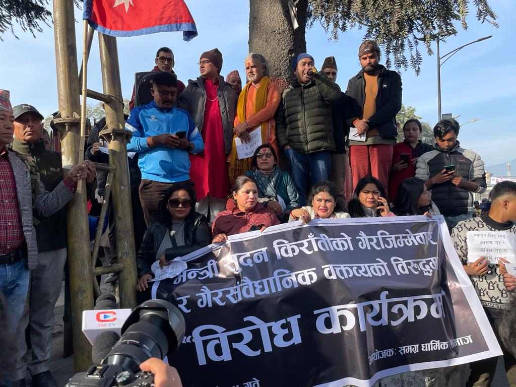 त्यसकै विरोधमा हिन्दूवादी संगठनहरूले विरोध प्रदर्शन गरेको हो। उनीहरूले मन्त्री किरातीको राजीनामा माग गरेका छन् ।