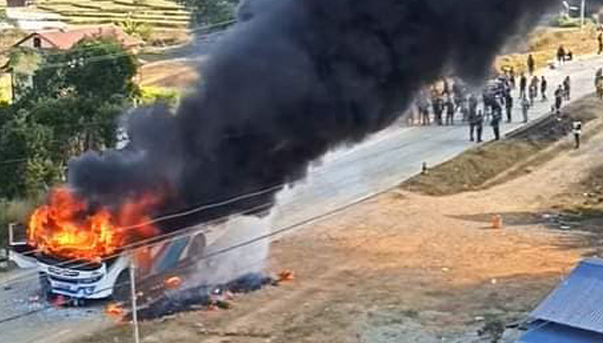 रामेछापको मन्थलीबाट काठमाडौं आइरहेको बागमती प्रदेश–०१–००६ ख ४५९३ नम्बरको अरनिको यातायातको बसको ठक्करबाट मोटरसाइकलमा सवार दुईजनाको ज्यान गएपछि स्थानीयले लगाएको आगोले वस पूर्णरुपमा जलेको छ ।
