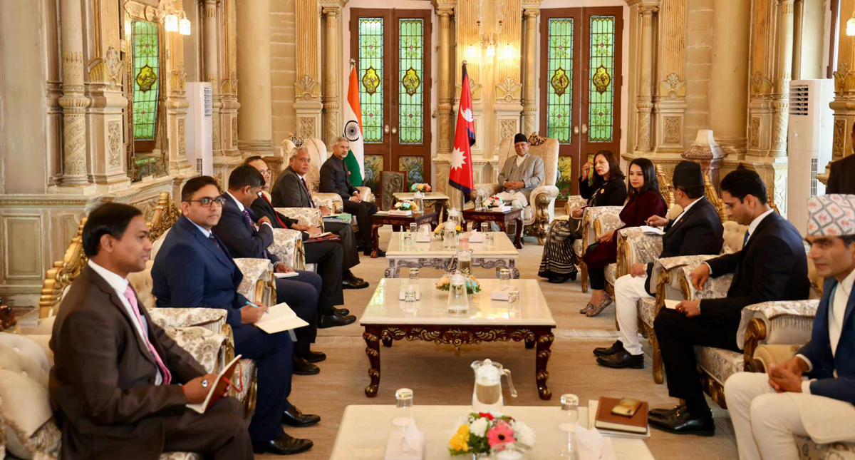 नयाँ दिल्लीबाट आज बिहान १० बजे मात्रै त्रिभुवन बिमानस्थलमा अवतरण गरेका भारतीय बिदेश मन्त्री जयशंकरले काठमाडौंको दुई दिने भ्रमणको क्रममा राष्ट्रपति रामचन्द्र पौडेलसँग भेटबार्ता गरे लगत्तै प्रधानमन्त्री प्रचण्डसँग शिष्टचार भेटबार्ता गरेका हुन ।