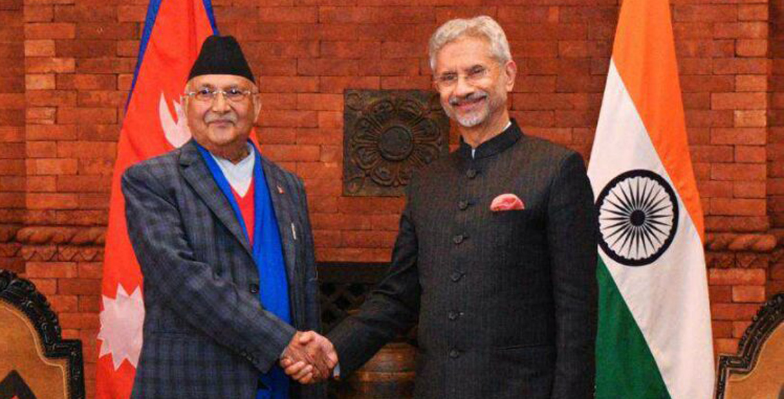 नेपालको दुई दिने भ्रमणमा रहेका विदेशमन्त्री जयशंकर र ओलीबीच बत्तिसपुतलीस्थित होटेल द्वारिकाजमा भेटवार्ता भएको हो ।