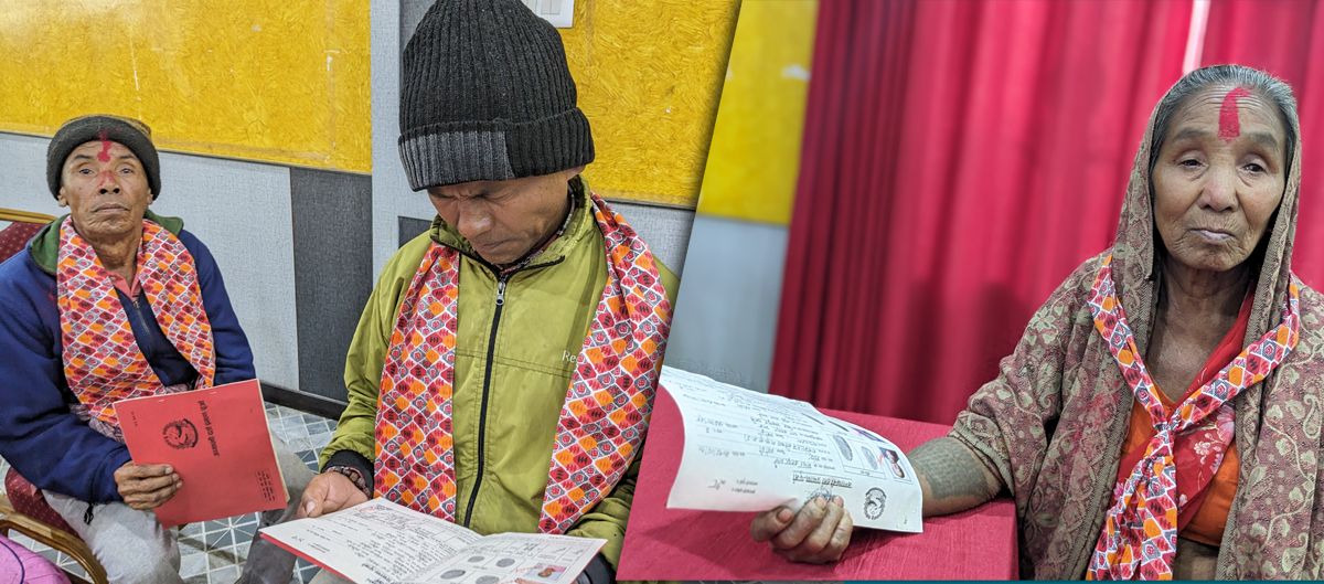 महोत्तरी । महोत्तरी बर्दिवास-२ का अमृत आले पढन जान्दैनन तर लालपुर्जामा टासेको उनकी श्रीमती सुकमाया आले र आफ्नै फोटो छाम्दै दंग देखिन्छन । उनकाे खुसी अनुहारमा छल्किरहेको छ ।