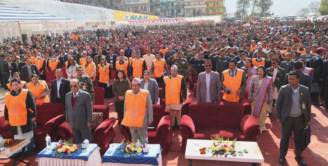 कार्यक्रममा प्रधानमन्त्रीले ‘२०७२ बैशाख १२ को भूकम्पले पुर्याएको याएको मानवीय तथा भौतिक क्षतिको हाम्रो पुस्ता साक्षी भएको बताउँदै विगतबाट गम्भीर शिक्षा लिनुपर्ने’मा जोड दिए ।