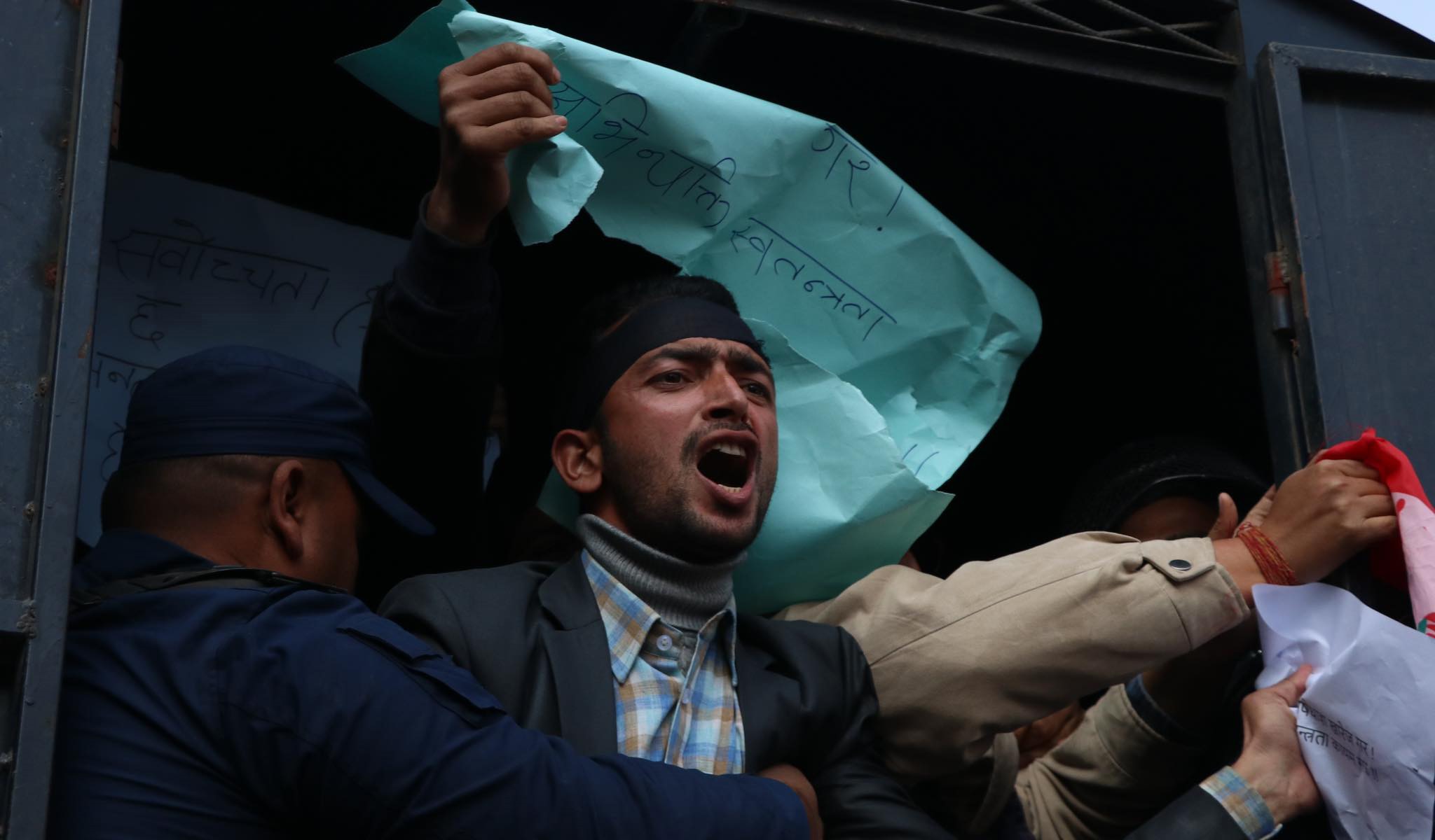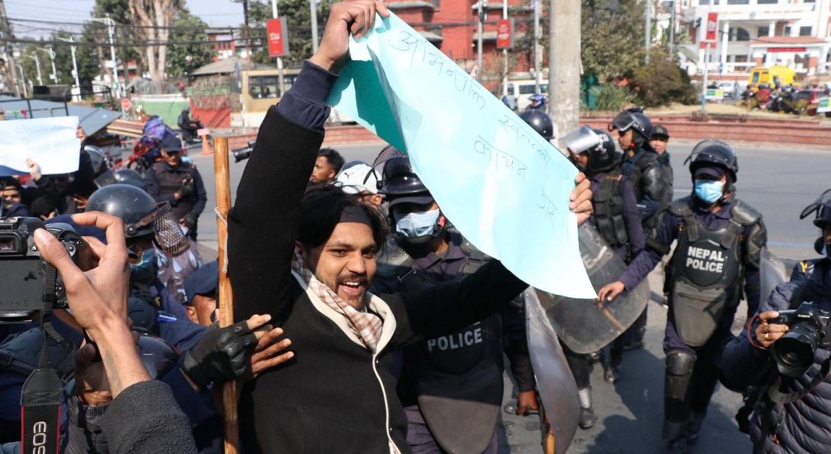 निधारमा कालोपट्टी बाँधेर प्रदर्शन गरेका उनीहरूले ‘माइतीघरको निषेधाज्ञा खारेज गर, अभिव्यक्ति स्वतन्त्रता कायम गर’ लगायतका प्लेकार्ड बोकेका थिए। विरोध प्रदर्शन गर्नेक्रममा २२ जना विद्यार्थीलाई प्रहरीले पक्राउ गरेको छ। प्रचण्ड नेतृत्वको वर्तमान सरकारमा नेविसंघकै माउ पार्टी कांग्रेस पनि सहभागी छ।