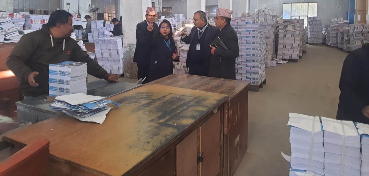 प्रधानमन्त्रीका जनसम्पर्क विज्ञ बुद्धि जिसी, स्वकीय सहसचिव गोकर्ण भट्ट, सहसचिव संगीता ओझालगायतको टोलीले भक्तपुरस्थित जनक शिक्षा सामग्री केन्द्र लिमिटेडको आकस्मिक अनुगमन गरेको थियो। गतवर्ष पुसपछि मात्र कागज आएको भएपनि आवश्यक पाठ्यपुस्तक समयमै छाप्न सफल भएको बताउँदै झाले यो वर्ष पर्याप्त कागज भएकाले सहज भएको बताए ।