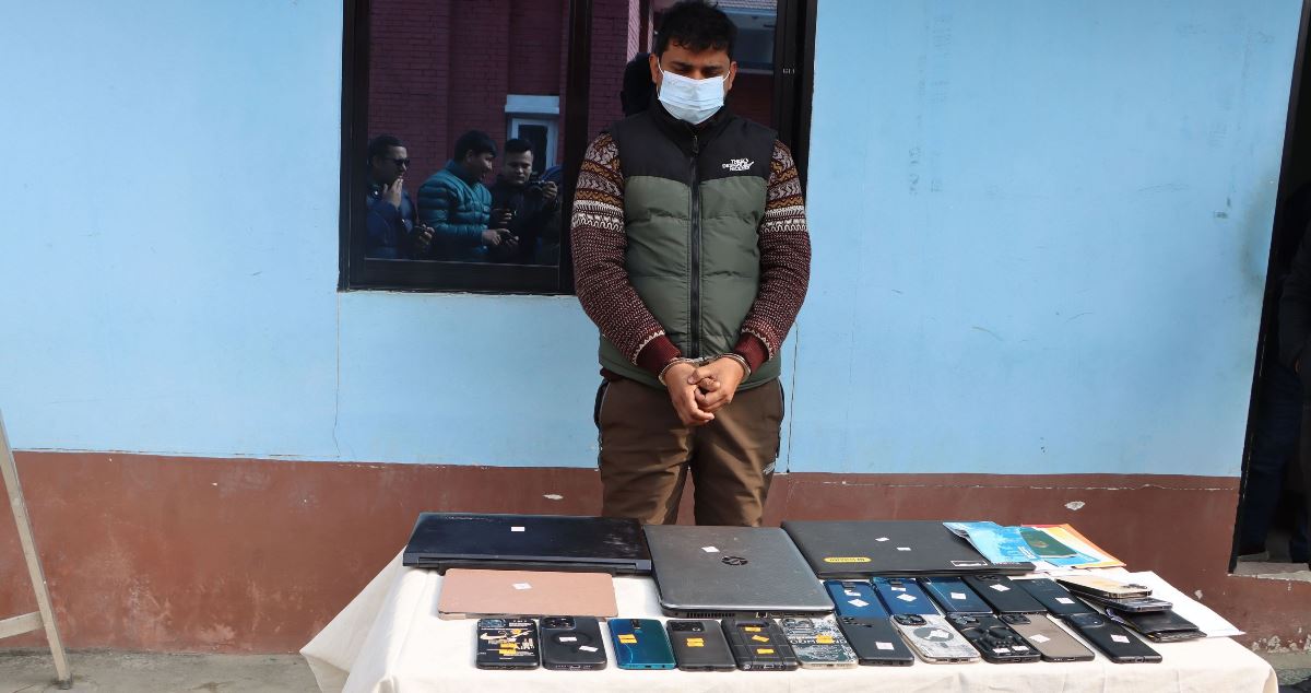 सप्तरीको राजविराज नगरपालिका–१० डुम्रीका २६ वर्षीय डम्बर साहलाई काठमाडौं उपत्यका अपराध अनुसन्धान कार्यालयको टोलीले पाँचथरबाट पक्राउ गरी मंगलबार सार्वजनिक गरेको हफ।