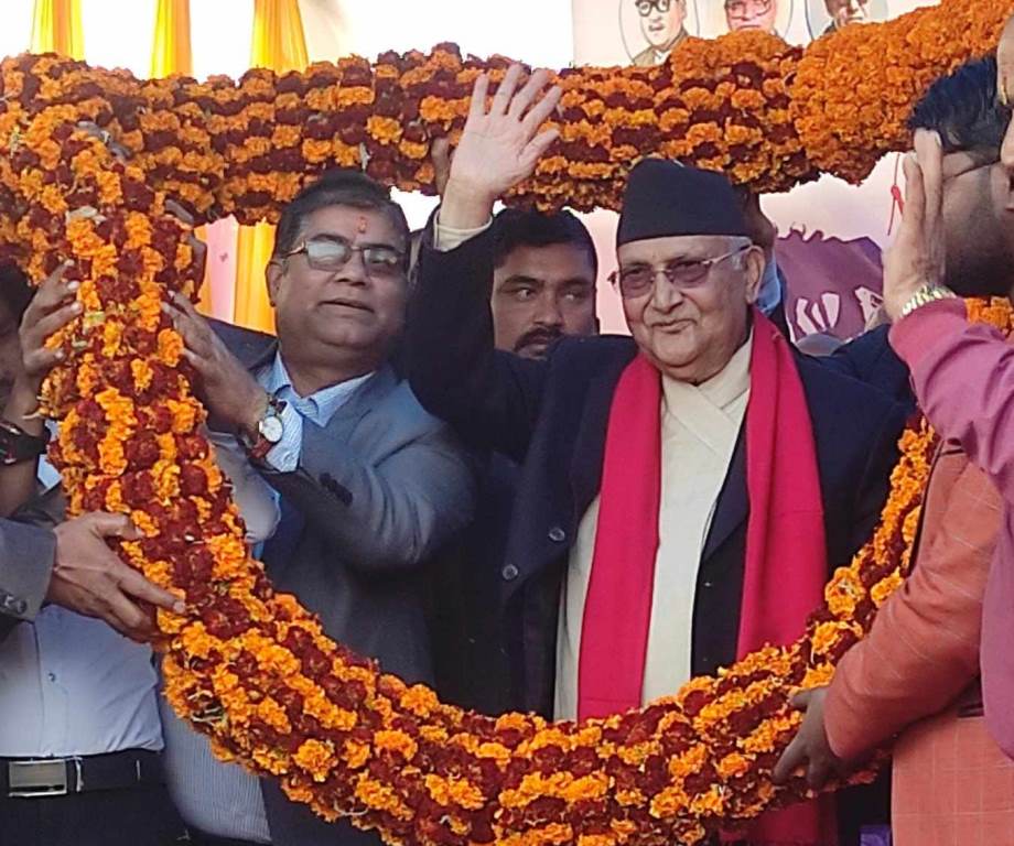 रौतहट । रौतहटको गरुडामा नेकपा एमालेका अध्यक्ष तथा पूर्वप्रधानमन्त्री केपी ओलीलाई १०१ किलोको फूलको माला लगाएर स्वागत गरिएको छ । नेकपा एमालेको रौतहटको १० औ जिल्ला अधिवेशनमा प्रमुख अतिथिको रुपमा अध्यक्ष ओलीले कार्यक्रमको उद्घाटन गरेका छन्।